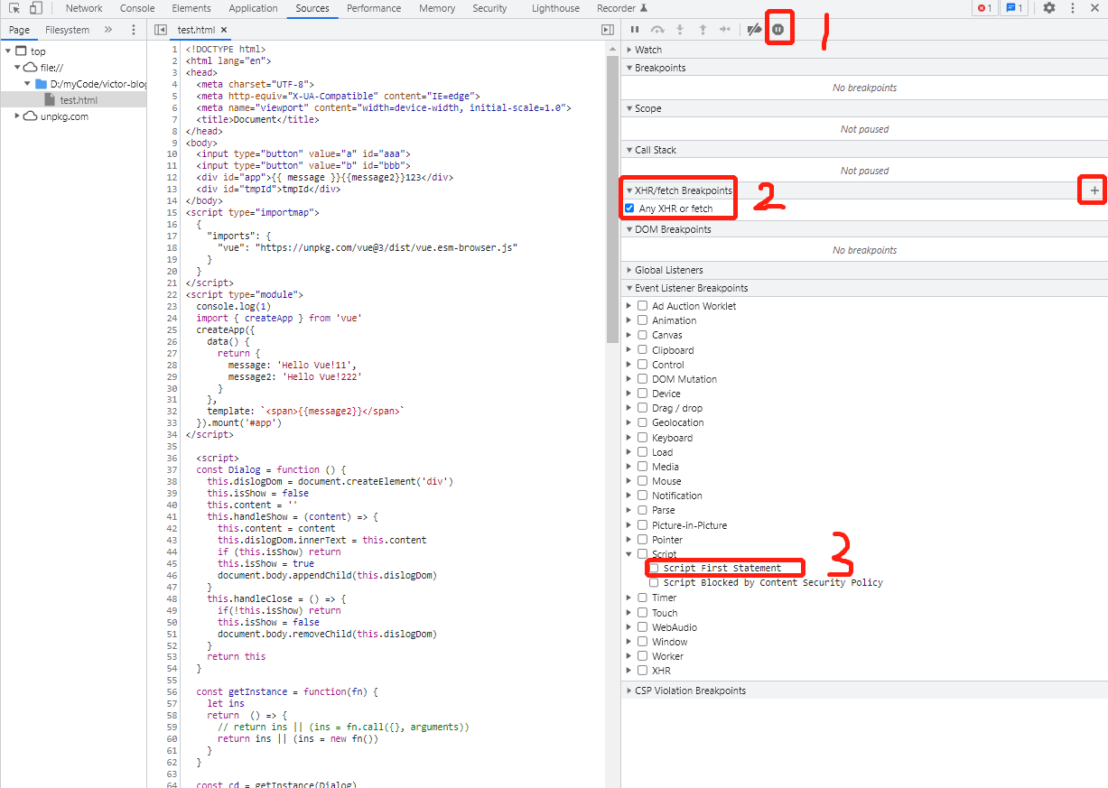 • 3:在每个 <script> 标签第一句代码执行时自动断点