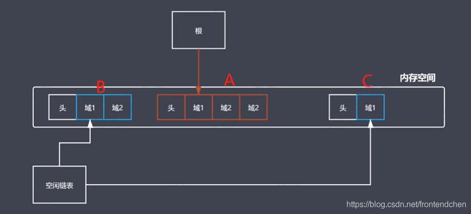 假如B和A为被清理空间,B是两个域大小,A是一个域大小,此时新申请1.5个域大小,则B会空闲0.5,A不够用。