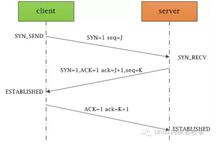 - 第二次握手:服务端接收到客户端的SYN报文段后,需要发送ACK信息对这个SYN报文段进行确认。同时,还要发送自己的SYN请求信息。服务端会将上述的信息放到一个报文段(SYN+ACK报文段)中,一并发送给客户端,此时服务端将会进入SYN_RECV状态。
