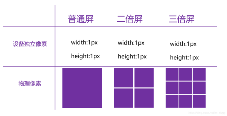 需要注意的是dpr=2(dpr=3)并不是2个(3个)物理像素表示1个设备独立像素,而是2*2个(3*3个)表示1个设备独立像素